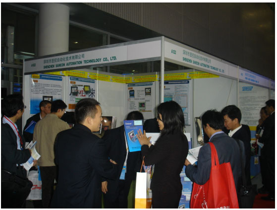 張耀東副總:在此次展會上顯控公司推出全球體積最小的3.5寸26萬真彩色數字液晶屏人機界面產品,同時我們的技術全面提升,把CPU運行速度從200MHz升到400MHz,銷售價格不變;同時軟件也從3.1版本升級到功能更強大、更完善的3.2版本。