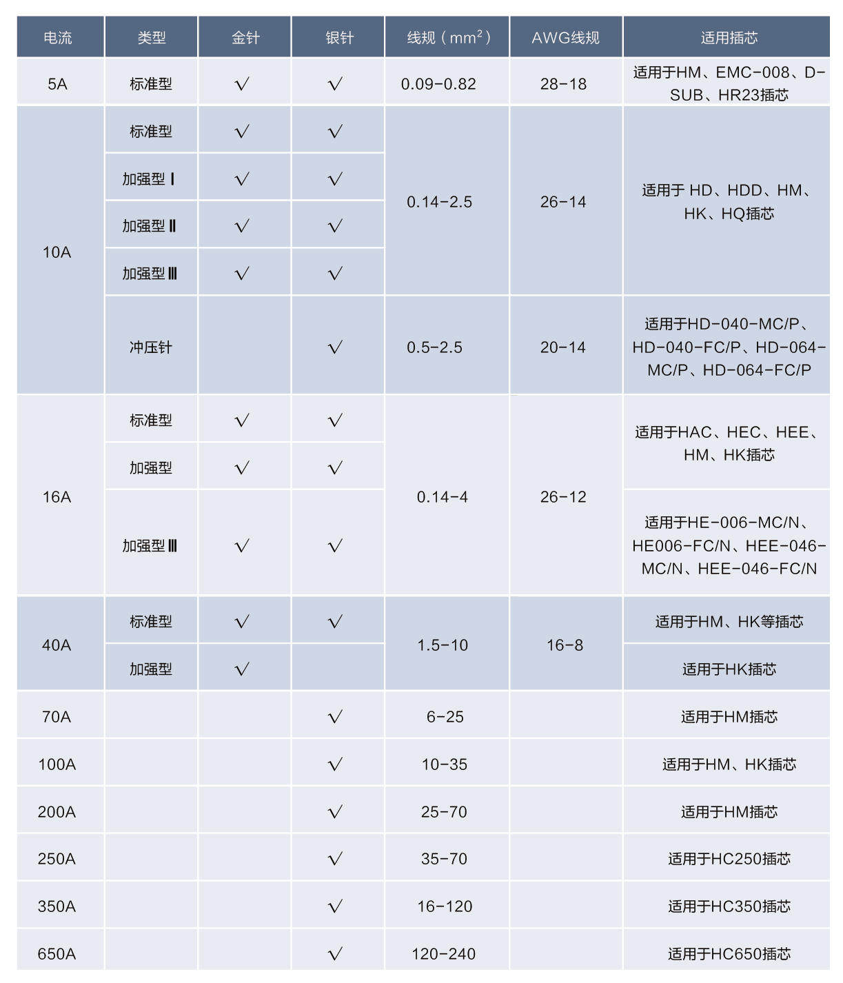 2. 根據接線截面積 3. 根據鍍層:鍍銀、鍍金 PS: 用于信號傳輸時,鍍金能更好防止信號的衰退;抗氧化性更強。