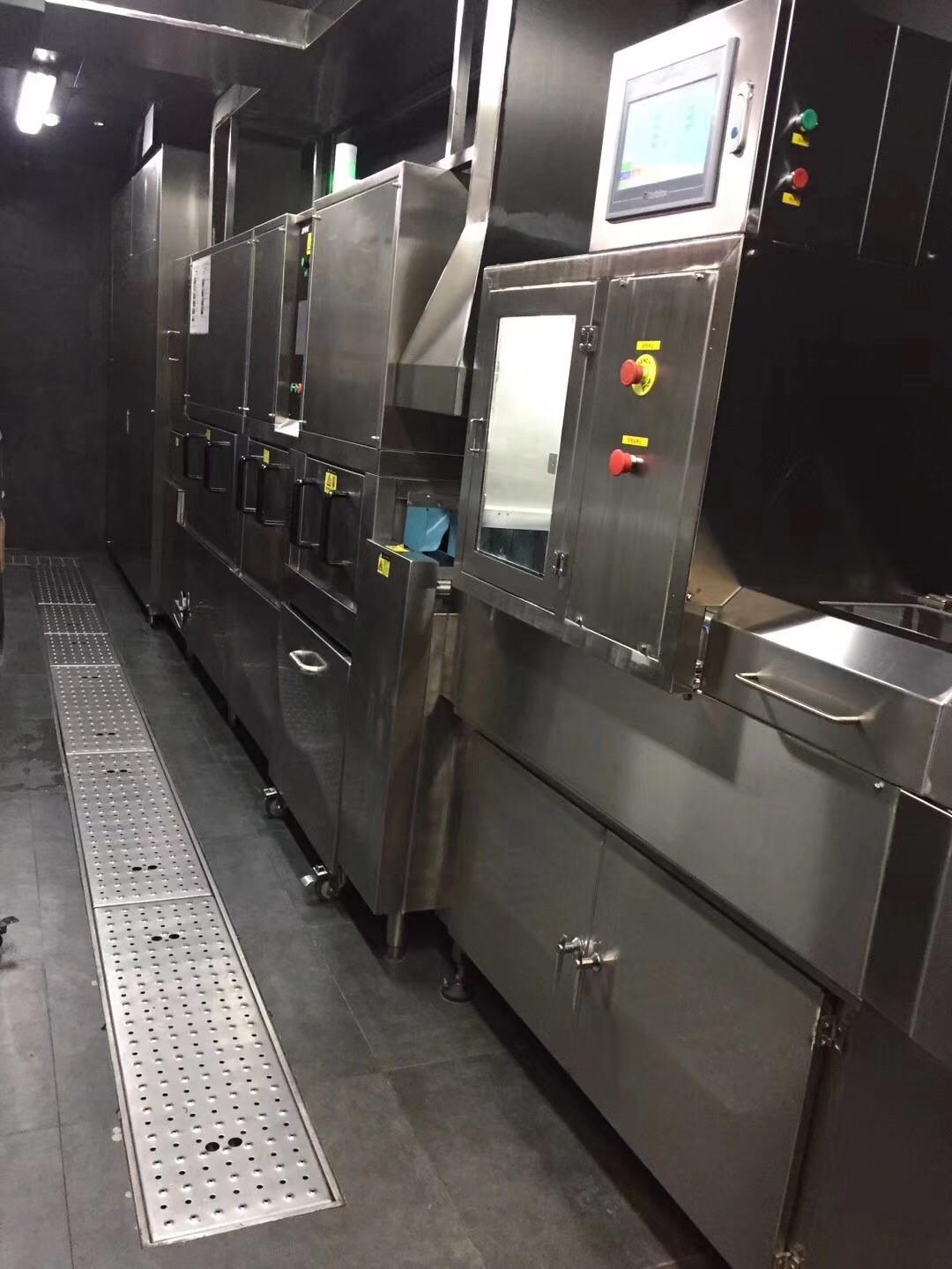 在海底撈首家智慧餐廳中,除了自動配鍋機以外,和利時還為海底撈提供了一條全自動無人清洗線,這在海底撈全球現有的300多家門店中也屬首次嘗試。全自動清洗線實現了從臟鍋入口開始,到自動清洗、檢測、鍋型識別、分類入庫、紫外線消毒、按訂單出庫等全流程自動化,無需人為干預。全自動無人清洗線大大提高了洗鍋出鍋效率,減少了后廚人員,保證了鍋具衛生滿足食品安全要求。