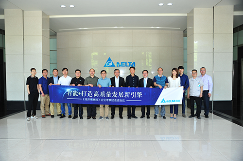 圖1:原工信部節(jié)能與綜合利用司司長周長益 (右七)、機械科學研究總院裝備制造業(yè)發(fā)展中心所長吳進軍 (左五)、 賽迪顧問智能裝備產(chǎn)業(yè)研究中心總經(jīng)理張凌燕(右四)等專家,參訪臺達吳江智能制造示范線,肯定臺達智造升級。