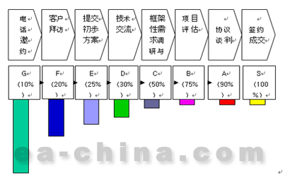銷售過程需要分解成為幾個(gè)標(biāo)準(zhǔn)化的階段,例如:工業(yè)品項(xiàng)目銷售過程為:(如下)