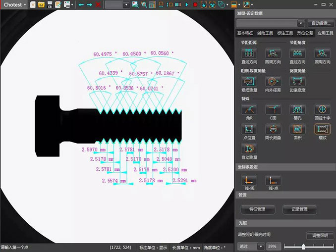 4. 功能豐富,自動(dòng)報(bào)表 √ 軟件分為測(cè)量設(shè)定、單件測(cè)量、CNC測(cè)量、自動(dòng)測(cè)量、統(tǒng)計(jì)分析五大功能模塊; √ 提供多達(dá)80種提取分析工具,包括【特征提取】工具(如最值點(diǎn)、中心線、圓弧、峰值圓等),【輔助工具】(如任意點(diǎn)線圓、擬合直線、擬合圓、切線、內(nèi)切圓等),【智能標(biāo)注】工具,【形位公差】工具,特殊【應(yīng)用工具】(如節(jié)距距離、節(jié)距角度、槽孔、螺紋、圓徑十字、倒角、圓角等); √ 自動(dòng)輸出SPC分析報(bào)告,可輸出統(tǒng)計(jì)值(如CA、PPK、CPK、PP等)及控制圖(如均值與極差圖、均值與標(biāo)準(zhǔn)差圖、中位數(shù)與極差圖、單值與移動(dòng)極差圖)。