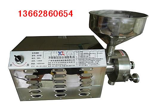 不銹鋼五谷雜糧磨粉機(jī)系廣州旭朗機(jī)械公司獨(dú)家生產(chǎn)和銷售。該機(jī)由優(yōu)質(zhì)不銹鋼精加工而成,配用中國(guó)名牌電機(jī),動(dòng)力強(qiáng)勁,能將各種糧食、中藥材等物料研磨成50~200目的均勻粉末。該磨粉機(jī)靠?jī)蓧K布滿齒槽的磨盤對(duì)磨運(yùn)轉(zhuǎn)從而將物料磨成粉末。該機(jī)屬連續(xù)投料式作業(yè),外觀豪華,結(jié)構(gòu)精密,噪音小,操作簡(jiǎn)便,粉碎細(xì)膩,無粉塵,特別適用于超市和商場(chǎng)專柜、五谷雜糧加工店使用。該機(jī)改變了鐵質(zhì)磨粉機(jī)之外表粗糙、噪音大、出粉粗、難清理、電機(jī)動(dòng)力不足等缺點(diǎn),達(dá)到了食品加工的GMP衛(wèi)生要求。 加工范圍廣:1.各種糧食含芝麻、核桃、大米、黑米、黃豆、綠豆、花生、蓮子、玉米、高粱、大麥、蕎麥、燕麥等; 2.各種干性藥材含杏仁、茯苓、紅棗、芡實(shí)、枸杞、薏仁、山楂、淮山、首烏、紅豆、阿膠、乳香、菟絲子、當(dāng)歸、黨參、黃芪等。