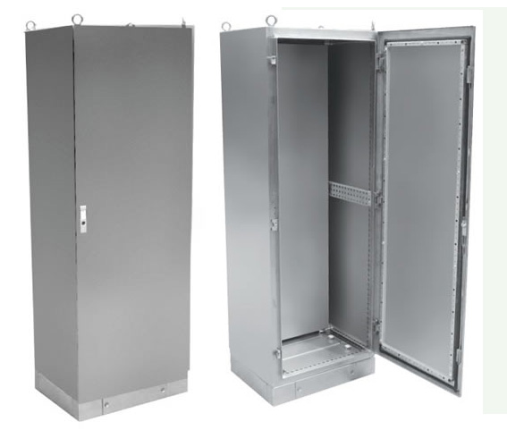 3、前門可單,雙開,高于地面25mm,隱蔽式門鉸,安裝容易,更換簡便,前門可打開130度角,門上裝有每25mm鉆一個孔的長方形框,既可加強門板,又可方便電線束,電器元件等安裝;