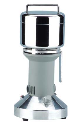 珍珠磨粉機中藥粉碎機 東莞隆鑫公司所生產的多功能小型粉碎機結構精密、體積小、重量輕、功效高、無粉塵、清潔衛生、操作簡便、造型美觀、既省電又安全等特點。粉碎槽及刀片采用不銹鋼制造,細度較高粉碎細度達50-300目,藥物無損耗,工作時無粉塵,不震動,藥材、植物、食物類均可粉碎,對中西藥物、珍珠、化工原料、食品原料、礦物、土壤、糧食、煤炭、實驗原料即能快速粉碎:阿膠、乳香、黃芪、三七、海馬、菟絲子、靈芝、田七、甘草、珍珠、大米、辣椒、胡椒、蓮子、黃豆、小麥、玉米、高粱、冰糖等等均能很好的粉碎。有極理想的粉碎效果,速度極快,能在3秒-2分鐘內完成粗碎及細粉,粉碎不同的藥物絕不會串味,是目前診所、門診部、特色門診、藥店、小型醫院、?漆t院、醫院藥房、家庭、研究所、實驗室、科研單位、大中專院校小劑量即時粉碎的首選機型,更適合田七、珍珠、辣椒、等加工商販隨身攜帶。廠價直銷、歡迎來電!0769-21894019 XS-02A 2兩手提式粉碎機 100g 50-300目 220(V) 650 (W) 25000轉  3.2(kg) 14×14×33cm