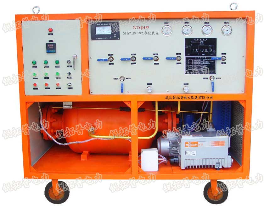 RTQH-60 SF6氣體回收凈化充放裝置是用于SF6氣體絕緣電器設(shè)備的制造廠,使用運(yùn)行科研等部門, 對各種電器設(shè)備進(jìn)行抽真空,對電器設(shè)備充入SF6氣體,并從使用或試驗(yàn)的電器中回收SF6氣體,同時進(jìn)行凈化處理壓縮貯存到貯罐。