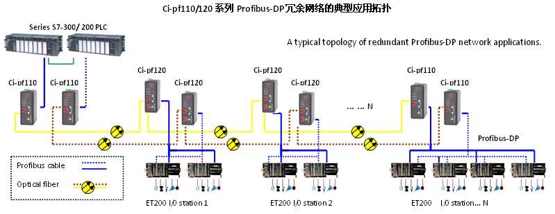 Ci-pf110/120系列產品是一款工業級Profibus-DP現場總線數據光端機,支持Profibus-DP協議, 通信速率0~6M(可選12M),單光口/雙光口鏈網支持。IP30防護等級,波浪紋鋁制加強機殼,35mmDIN導軌安裝,DC(9-30)V寬電源,具備繼電器告警輸出,雙電源冗余和隔離保護功能。 Ci-pf110支持一路光纖接口,一路數據接口,Ci-pf120支持兩路可級聯上下行光纖接口,一路數據接口。數據接口采用與Profibus-DP總線電纜接頭兼容的DB9F接口。