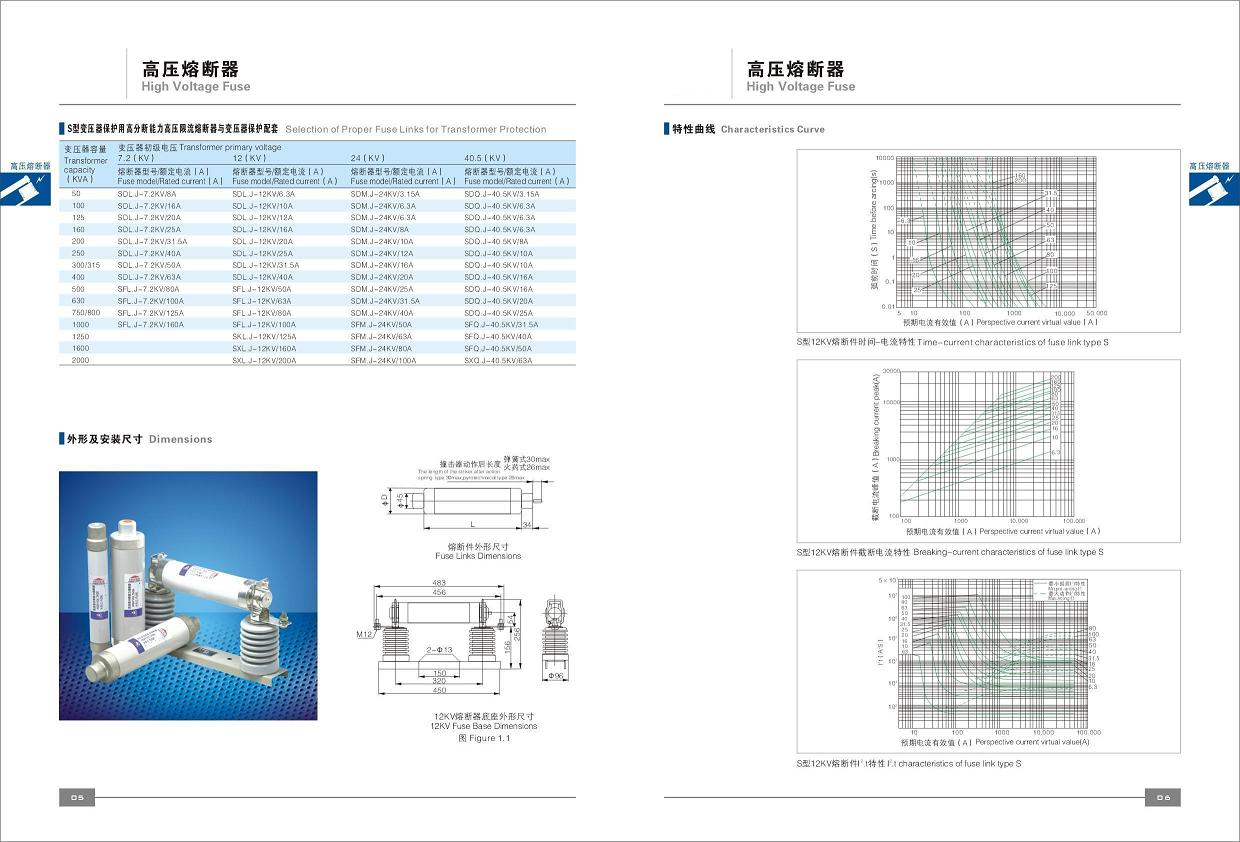 變壓器保護(hù)用高分段能力高壓限流熔斷器適用于交流50Hz,額定電壓3.6~40.5KV,額定電流至200A的電力系統(tǒng)中,符合國家GB15166.2標(biāo)準(zhǔn)和國際電工委IEC60282-1標(biāo)準(zhǔn)以及德國DIN標(biāo)準(zhǔn)。國內(nèi)型號(hào)XRNT1-  國際型號(hào)SDLAJ-,SFLAJ-
