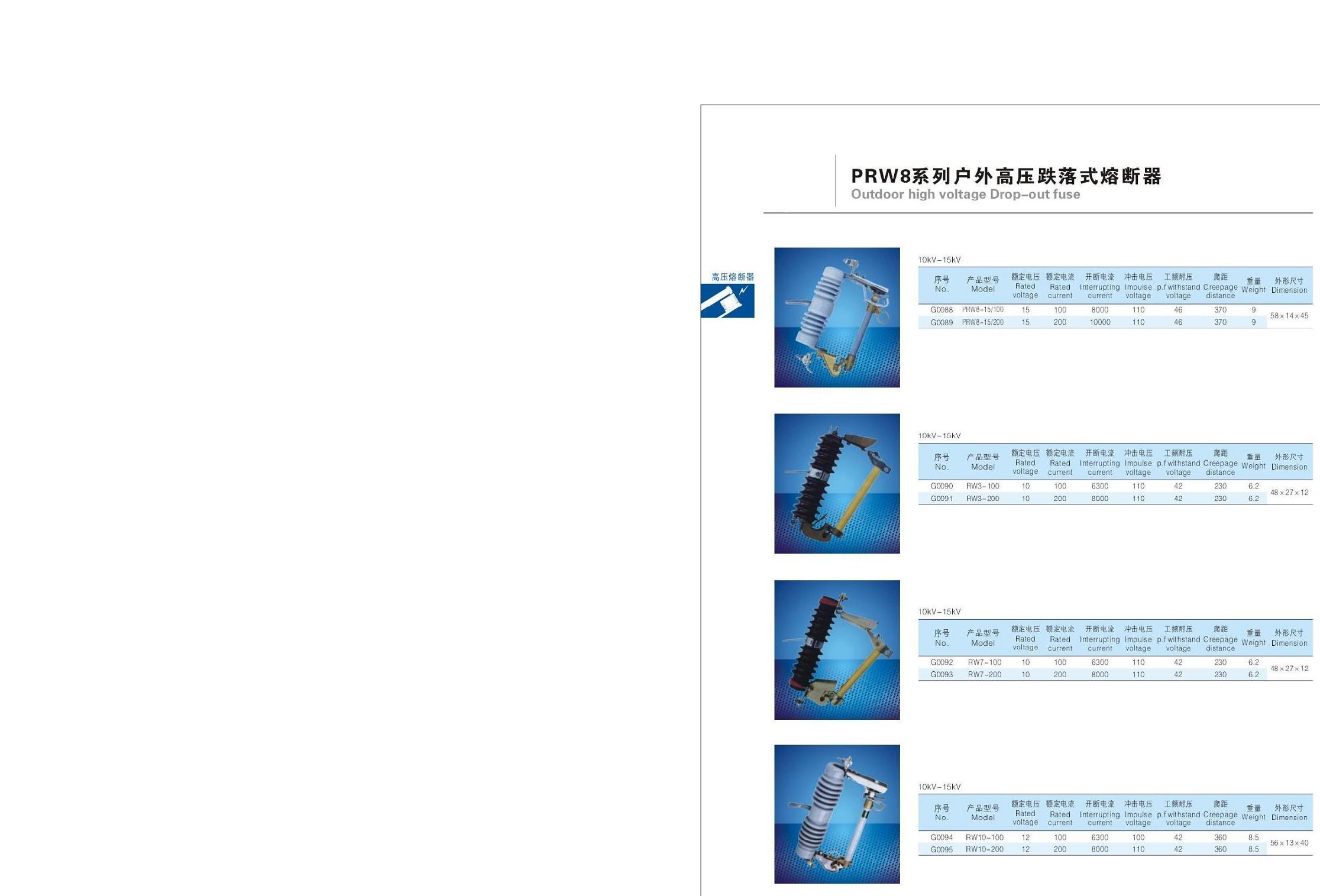 PRW8系列戶外高壓跌落式熔斷器RW3,RW7,RW10,RW11。適用于交流50HZ,額定電壓10KV~35KV戶外架空配電系統(tǒng)上,作為線路或電力變壓器的過載和短路保護(hù)用,本產(chǎn)品在正常動(dòng)作或操作后,載熔件跌落,形成可見斷口,對(duì)維護(hù)檢修起到安全保證作用。本產(chǎn)品符合國(guó)家GB15166.2標(biāo)準(zhǔn)和國(guó)際電工委IEC60282-1標(biāo)準(zhǔn)
