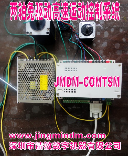 一、功能描述 JMDM-COMTSM是深圳市精敏數字機器有限公司自主研發的一款工業級高性能可編程、可監控、免驅動的2軸步進電機運動控制器。該控制器有8路高速數字量信號輸入,3路數字量信號輸出、2路脈沖輸出控制2路步進電機,無需步進電機驅動器,可直接驅動57以下的步進電機,每相最大電流為2A;有1路串口通信接口可與JMDM系列其它功能的控制板組合使用構成大的控制系統,也可與電腦、觸摸屏聯網實現上位機遠程控制;用單片機的C語言編程(keil C),有斷電數據記憶和串口通信功能,具有防雷擊、抗強電磁干擾、穩定可靠、性價比高、使用簡便的特點。可靈活應用在各種工業自動控制場合,如冶金、化工、塑料、印刷、輕紡、食品、包裝等行業中的生產機械、工業流水線、各種機床的工業控制設備中。 本控制器的工作方式有2種:根據單片機程序獨立控制、上位機串口監控。采用智能S形加減速曲線控制,使電機控制更加平滑穩定。精敏上位機在線控制界面提供了一般應用場合常用的運轉參數設置項(如步進電機運轉脈沖數、運轉速度、送完輸出延時、起步速度設定、運行方向、手動速度設定等),方便客戶直接使用。客戶無需懂任何專業的編程語言,僅通過電腦在線設置步進電機運轉參數,即可實現電腦串口控制2臺步進(或伺服)電機運行;并可同時控制8路數字量輸入3路數字量輸出,同時可提供上位機串口控制的VB范例程序和通信協議,方便使用者在此基礎上進行二次開發。