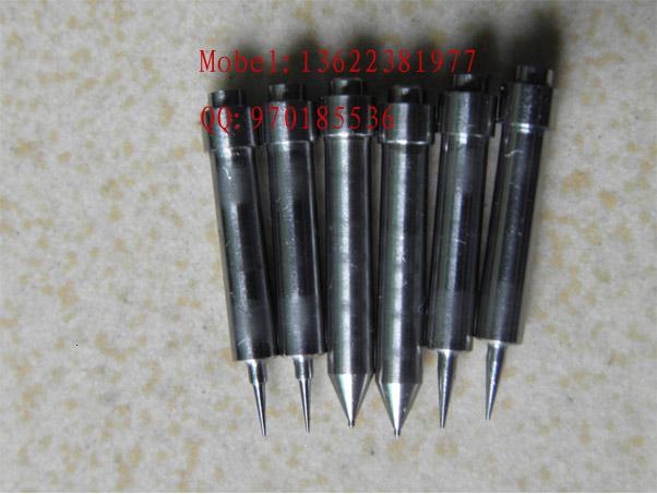 1、鎢鋼頂針:采用進口鎢鋼材料長度10-90mm均可,角度10°-60°,直徑0.5mm和0.7mm,前端圓弧最小半徑可做到0.006mm,可非標定做。