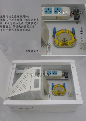 標(biāo)準(zhǔn)配置:光纖固定夾,光纖熔接盤(pán),1位多功能插排,ONU安裝支架