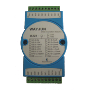 選型舉例2:型號:WJ28-U1-232 表示8路0-5V信號輸入,輸出為RS-232接口