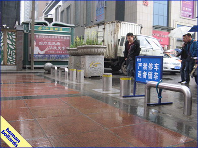 、步行街:步行街路口安裝升降柱,平時路樁處于升起狀態,限制車輛進出,如遇緊急或特殊情況(如火災、急救、領導視察等)可迅速降下路柱,以便車輛通行。