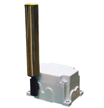 皮帶跑偏時,迫使動作桿偏離,觸動報警微動開關。如果繼續偏離,觸動另一組觸點,輸送機就會保護性停機。