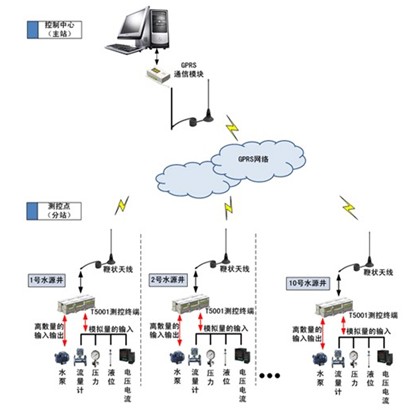 (1)無(wú)線水源井群集中監(jiān)控系統(tǒng)