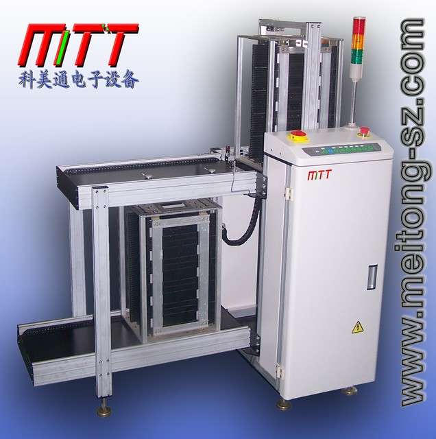 LOADER SMT自動(dòng)送板機(jī)(上板機(jī)) 型號(hào):MTT-SB-A5 深圳市美通電子設(shè)備有限公司http://www.meitong-sz.com,0755-27905052,13510163050適用:SMT和AI自動(dòng)生產(chǎn)線(xiàn)送板用,無(wú)須用手接觸PCB板,更好的保護(hù)了PCB板。并可設(shè)置升降格數(shù),本機(jī)具有升降精度高、自動(dòng)進(jìn)出料架、故障(音、色)報(bào)警功能,是實(shí)現(xiàn)全線(xiàn)自動(dòng)化及高產(chǎn)量的必備設(shè)備特點(diǎn): 1. 采用可編程控制器PLC控制系統(tǒng)。 2. LED輕觸式控制界面,操作方便。 3. 送板推出采用加長(zhǎng)型氣缸推出PCB板,推力可調(diào)保防PCB板不被推壞。 4. 氣控采用進(jìn)口中排電磁閥,使推板氣缸可以停在任意的位置。 5. 料架定位用4個(gè)氣缸分別固定料架的4點(diǎn),使送板的精度更為可靠。 6. 送板出口裝有PCB保護(hù)感應(yīng)器,更為有效的保護(hù)了PCB板。 7. 送板步距可分為四種(10,20,30,40mm) 8. 可放置3個(gè)料架(或者按客戶(hù)要求) 9. 方向可選取從左至右或右至左 10.標(biāo)準(zhǔn)配備信號(hào),可與其它設(shè)備進(jìn)行在線(xiàn)連接. 本公司所有設(shè)備均可根據(jù)客戶(hù)要求定做!