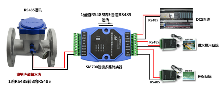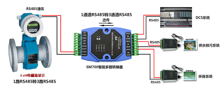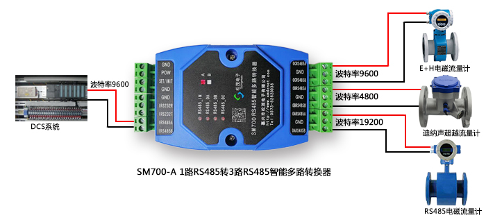 SM700 RS485智能多路分配器是智能儀表只有一個RS485或者RS232接口被三個獨立監控系統采集數據最有效的解決方案。采用ARM微處理器、專用芯片并結合大量的實踐經驗所研發的產品,按照工業產品要求進行設計,具有高可靠性及穩定性的特點,保證了惡劣環境下的穩定工作。