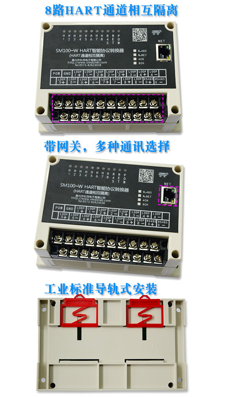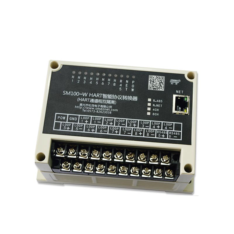 SM100-W系列HART智能轉換器是采用ARM微處理器、HART協議調制解調專用芯片并結合大量的實踐經驗所研發的產品。其按照工業產品要求進行設計,具有很高的可靠性及穩定性。智能轉換器配有標準的RS485接口及以太網接口,能與有HART協議的智能儀表進行數據透明傳輸或者轉換為MODBUS_RTU或MODBU_協議讀取數據,保證數據進行實時傳輸。 HART協議使用Bell202頻移鍵控(FSK)標準,在4~20mA基礎上疊加調制數字信號,使得HART協議儀表在不干擾4~20mA模擬量信號的同時允許雙向數據通訊。SM100-W系列智能轉換器就是數字信號與模擬信號進行雙向調制解調的智能轉換器。