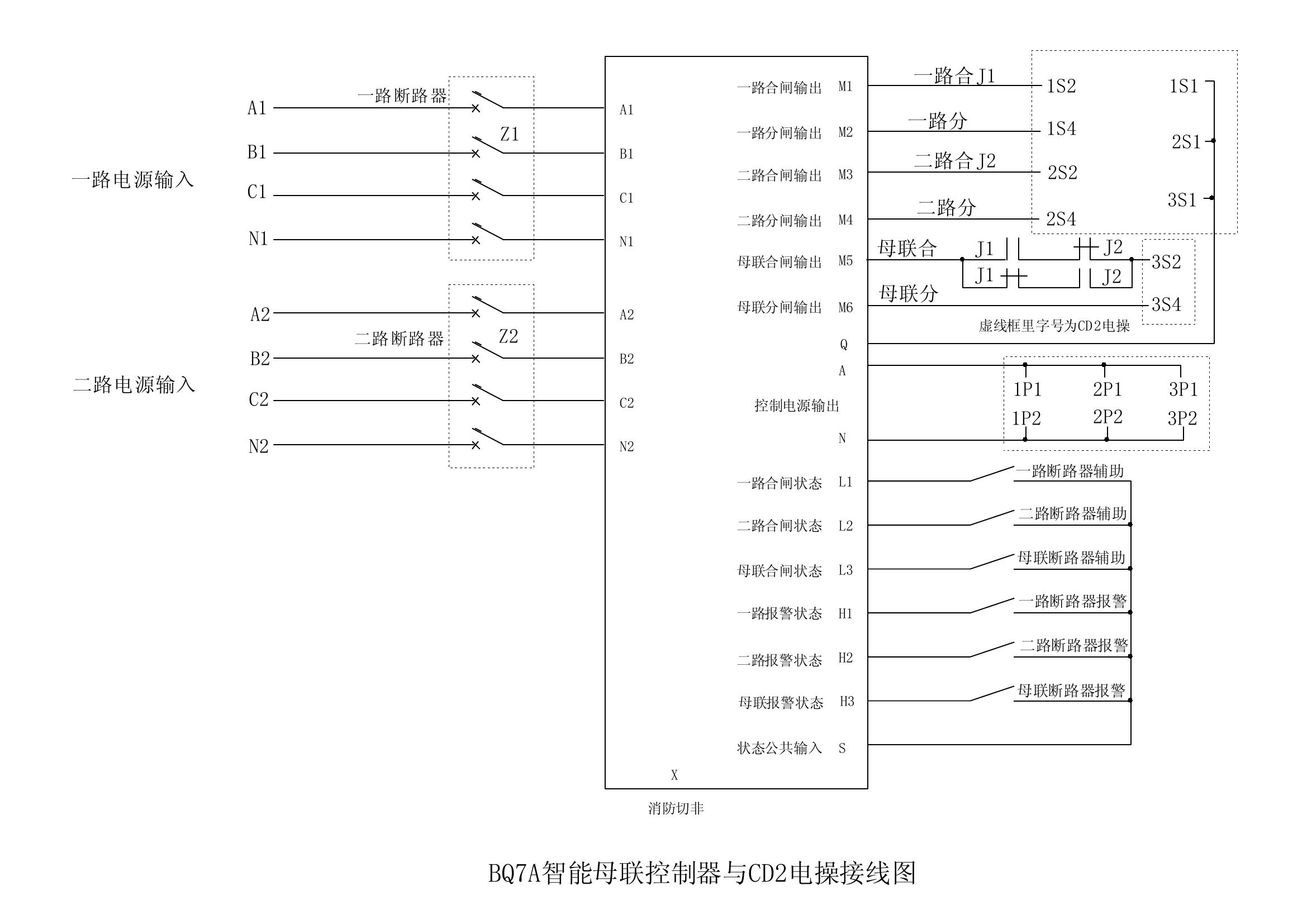 組成母聯轉換開關的有:BQ7A母聯控制器、框架式空氣斷路器或塑殼斷路器加CD2操作機構等。