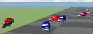 圖 3:在以 50 英里/小時(shí)的時(shí)速下執(zhí)行 fishhook 操控實(shí)驗(yàn)時(shí),配有 ESC 和未配有 ESC 的 SUV 的可視化行為演示。藍(lán)色的 SUV 配備了經(jīng)過(guò)優(yōu)化的 ESC,紅色 SUV 未配備 ESC。