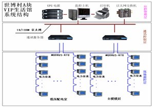 上海世博村VIP生活館低壓配電系統主要有4臺10kV/0.4kV配電變壓器,本系統主要負責對低壓進線及相應配出回路的實時動態監控以及樓層所安裝電力儀表的回路進行監測。