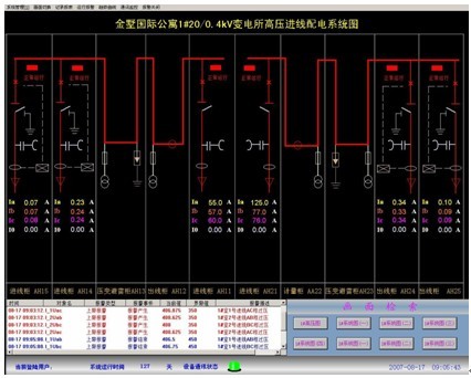 標(biāo)準(zhǔn)的變配電系統(tǒng)具有CAD一次單線圖顯示中、低壓配電網(wǎng)絡(luò)的接線情況;龐大的系統(tǒng)具有多畫面切換及畫面導(dǎo)航的功能;分散的配電系統(tǒng)具有空間地理平面的系統(tǒng)主畫面。主畫面可直觀顯示各回路的運行狀態(tài),并具有回路帶電、非帶電及故障著色的功能。主要電參量直接顯示于人機交互界面并實時刷新。