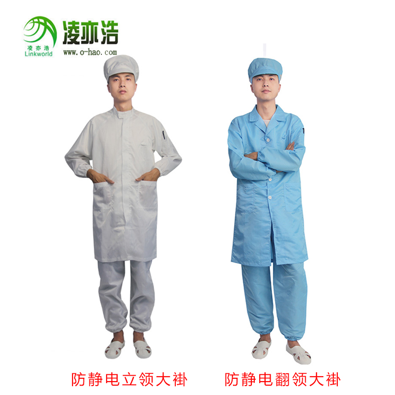 防靜電大褂服采用專用的滌綸長絲經向緯向的嵌織導電絲面料,經過特殊工藝制作而成的服裝,具有高效的防靜電防塵性能,面料本身不發塵的同時還能夠有效的抑制住工作人員在車間內走動時帶起的灰塵,幫助企業營造一個無塵無靜電的生產環境。下面給大家講解一下凌亦浩防靜電大褂服的特點: